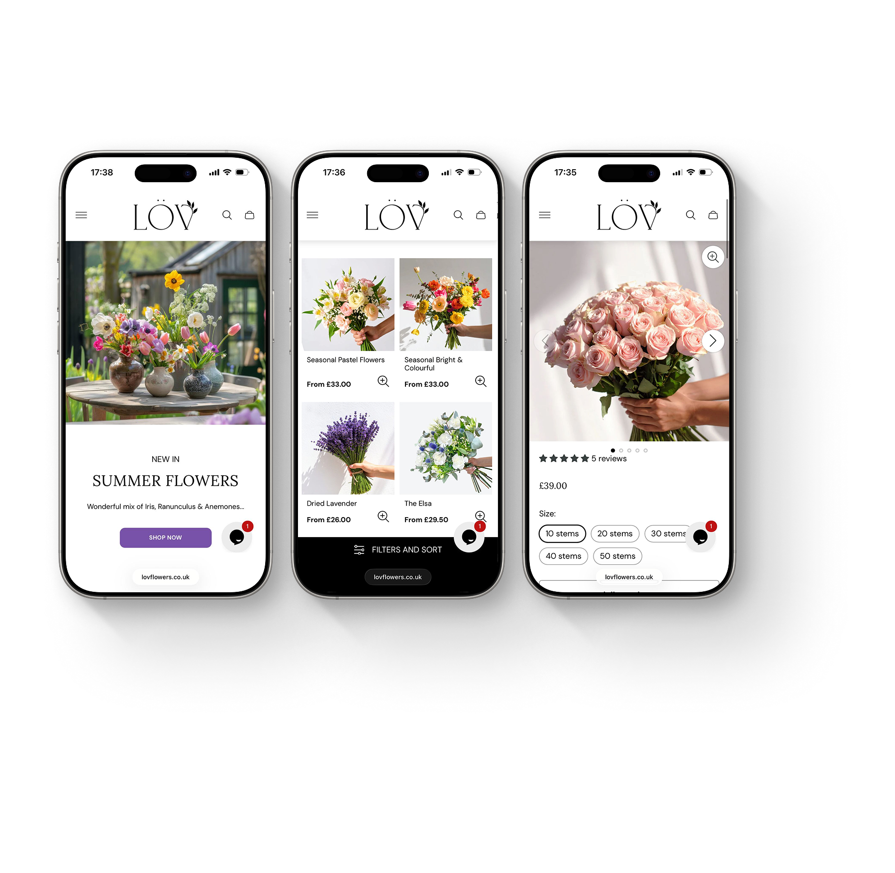 Building and scaling LÖV Flowers taught me to design beyond personal taste and rely on real user behaviour and performance data. Iterating based on insights, not assumptions, deepened my understanding of how brand, UX, and business strategy must work together to create both emotional resonance and commercial results. Operating as both designer and founder strengthened my empathy for users, while also giving me a deeper appreciation for the strategic and operational realities clients face.