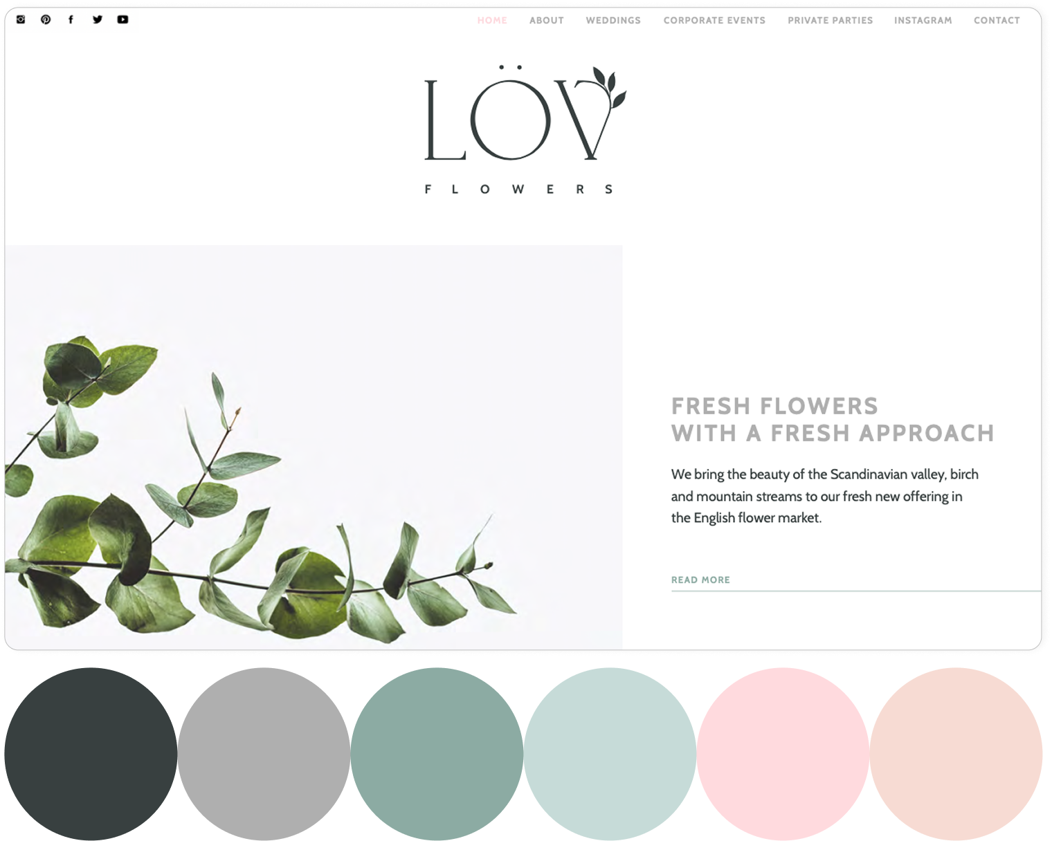 The first version of LÖV Flowers leaned into a soft, Nordic-inspired aesthetic, with muted greens, delicate florals, and a calm, nature-focused tone. Initially, the company was created as a wedding and event florist, with a purely informational website showcasing my floral work and offering a simple booking form. As the business evolved, the direction shifted toward e-commerce, allowing customers to browse and order flowers directly online.