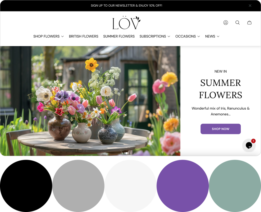 LÖV Flowers is a UK-based flower delivery service, with the goal of bringing the charm of local flower shops online, allowing people to order flowers from the comfort of their home. The business focused on creating a joyful, intuitive shopping experience rooted in Scandinavian aesthetics and eco-conscious values.
